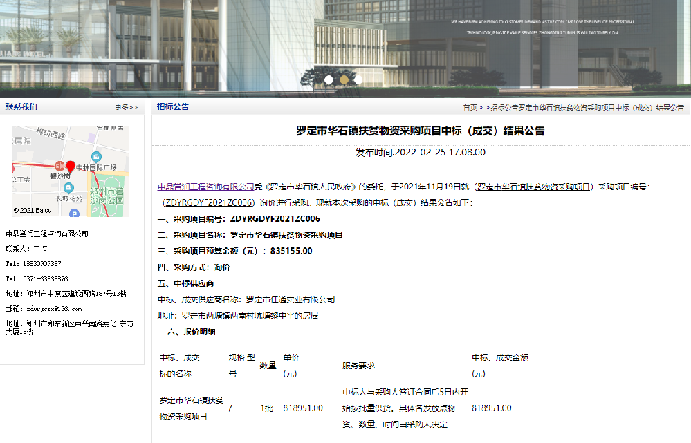 • 羅定市華石鎮(zhèn)扶貧物資采購項(xiàng)目中標(biāo)(成交)結(jié)果公告 2022-02-25